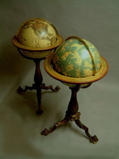 We have produced these superb globes on fine intricate bronze floor standing tripod stands, the design is taken from the same stand design that Charles Copley used, however it should be noted that Copley produced his stands in cast iron, this being the most readily available and economical material at the time.