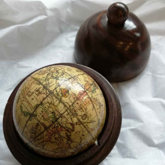 For many years now we have managed to source reclaimed hardwood with which to use for Turned Box Globes, these delightful miniature globes are hand coloured.