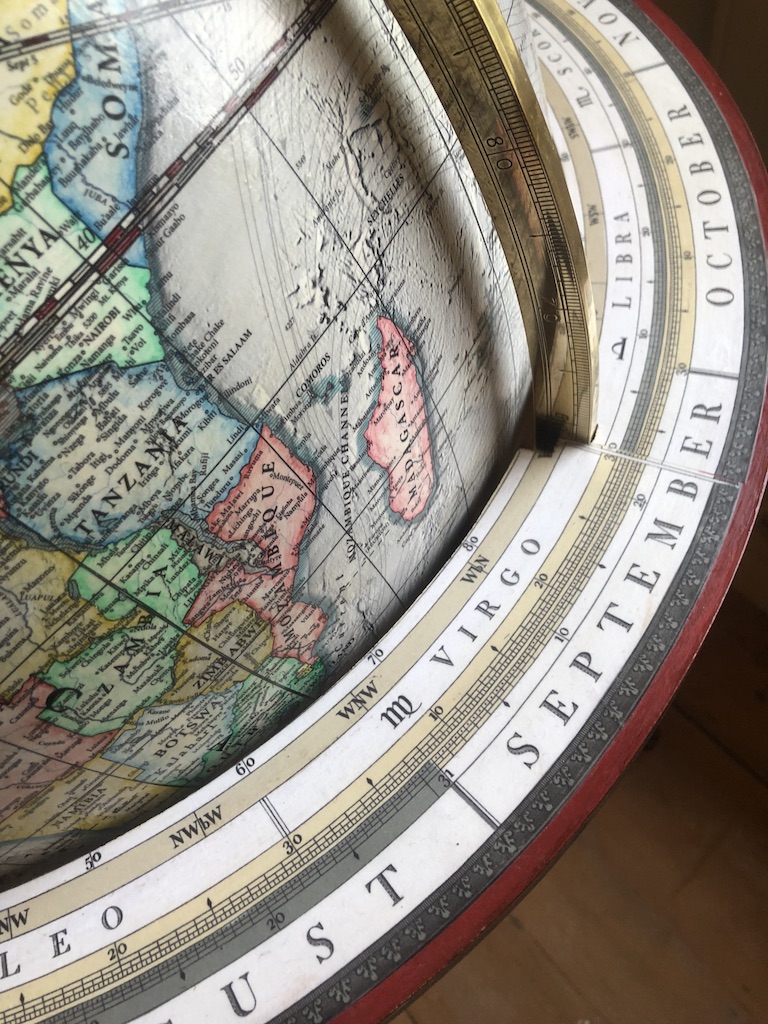 A traditional set of horizon papers are used with this globe. Fully Engraved Brass Meridian and Hour dias for a 21″ Hand coloured Modern Day Globe. Please note that the cartography has been digitally made which enables sizes from 16 inches diameter to 43″ diamter, Traditional stands or modern, hand coloured or printed color. We can also customise this globe for the intended individual or company.