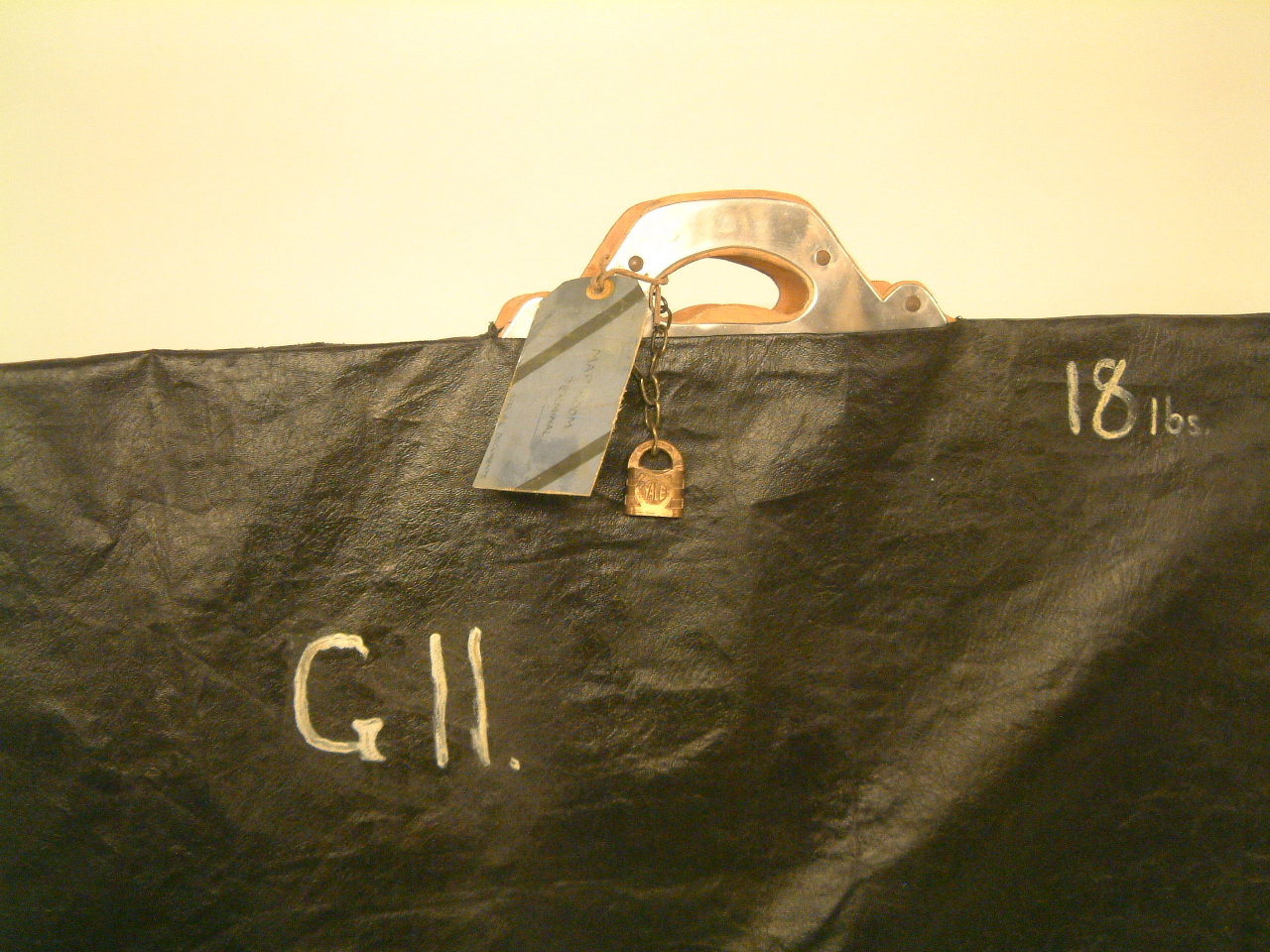 It is interesting to note that the outside case has its weight recorded of 18lbs clearly a necessity for the flight to Potsdam. Also the case is adapted, the internal rexine material has been cut away to enable the 1944 National Geographic map to be displayed, clearly a case of having to make do with limited resources.
