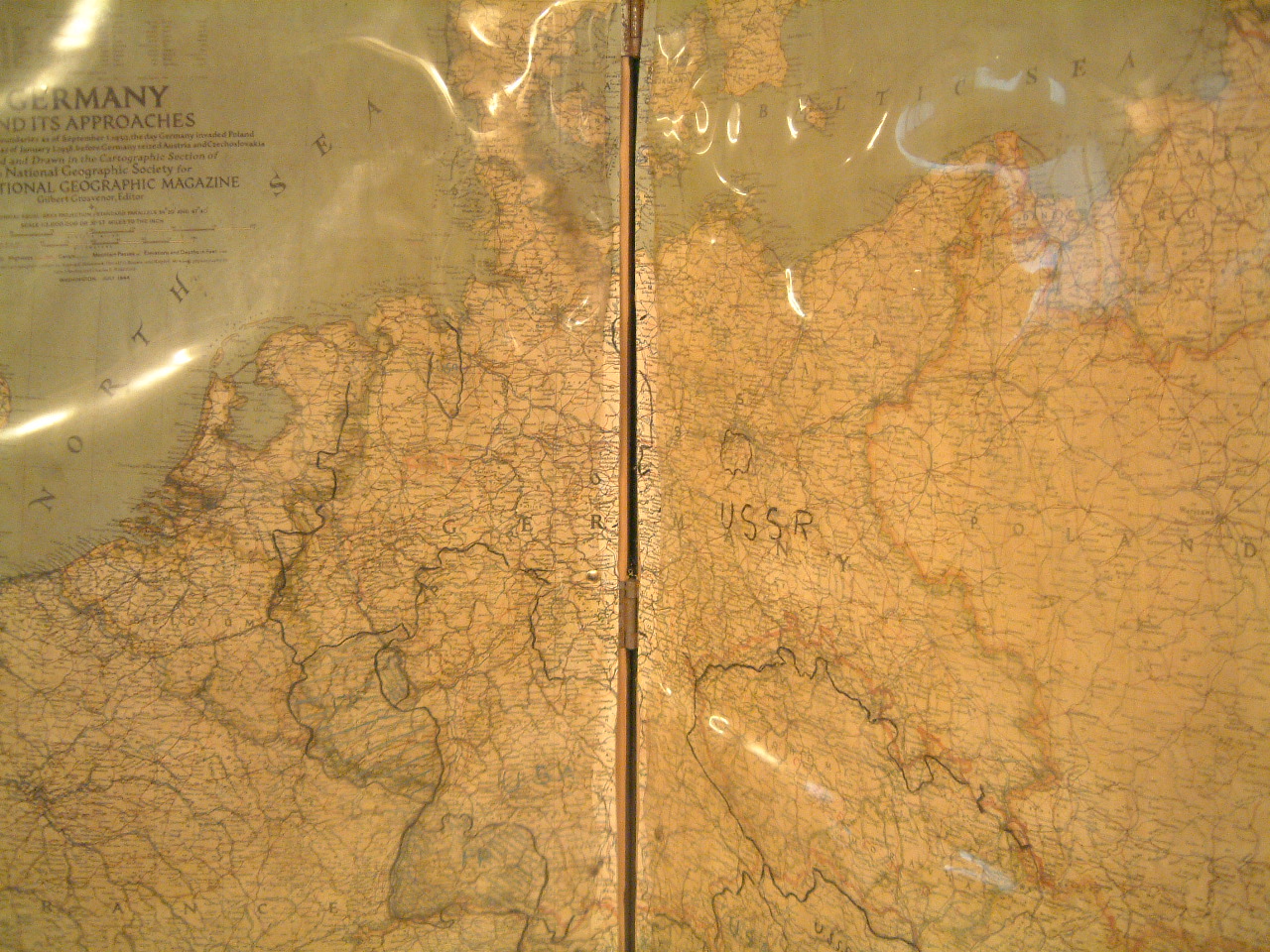 Illustrated here is our copy of the Potsdam Map, the original is now displayed in the Churchill War Rooms in Whitehall. We worked with the Machine Shop in order to make this facsimile for display in a museum in Germany. Clearly the acetate had shrunk by the time the allies used it as reference because they then had to draw their proposed divisions across not only the acetate but also on the map itself where the shrinking acetate had exposed the map.